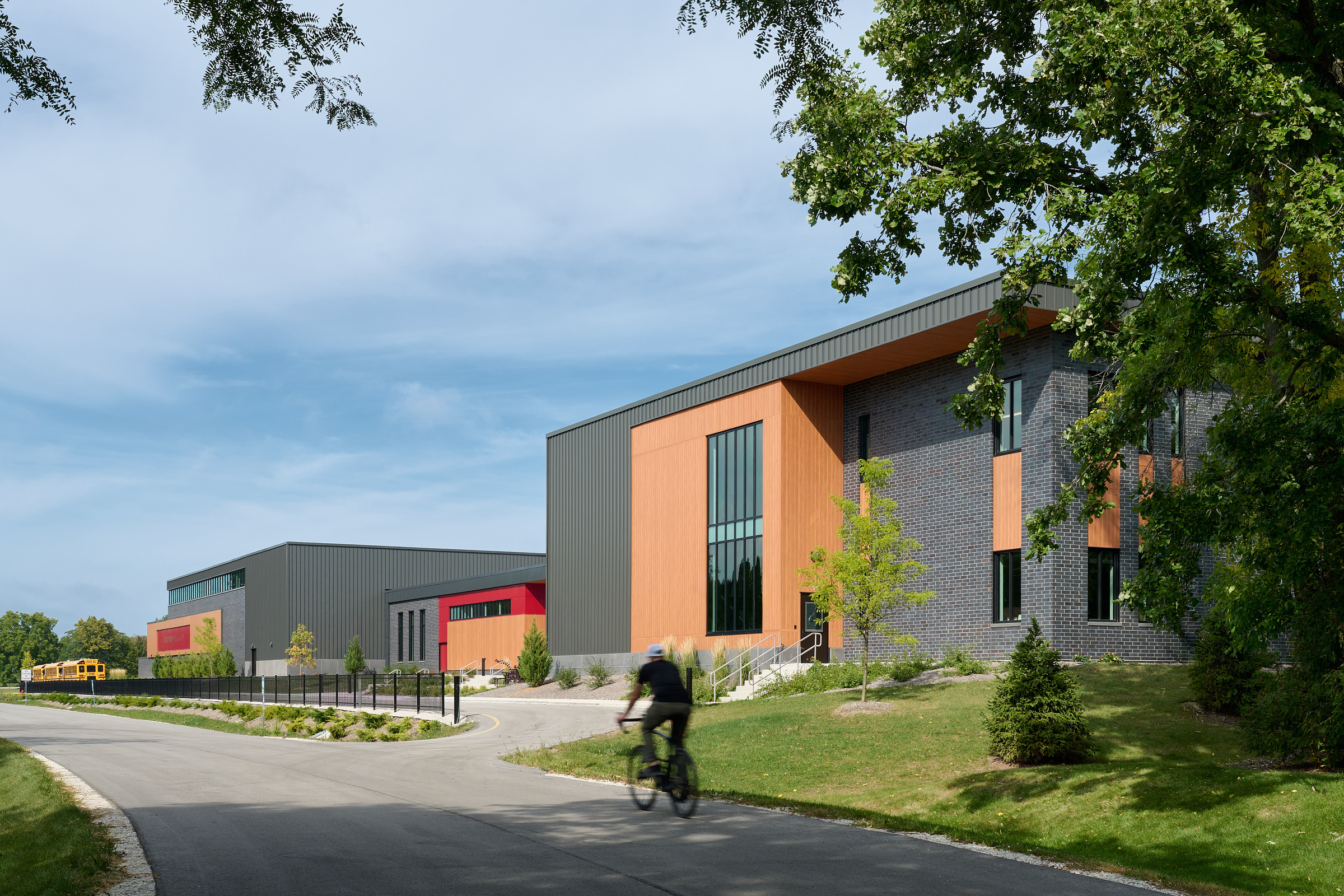 The goal of this project was to create a modern aesthetic that both stood out from its surroundings, while still fitting in. The inspiration for the exterior was to mimic the many tobacco barns you see on the drive through Loretto, KY to get to Makers Mark Distillery. These barns typically are built with a vertical black siding, but the effects of time create natural patterns of fading color variation, warping, and vertical slotted openings. The modern mimic of this aesthetic helped us create a structure that is clearly new, but naturally fits in with the surrounding campus much of which has been there for the past 50 years.