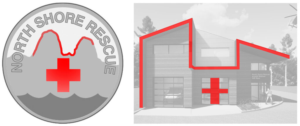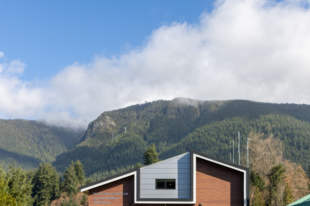 When asked about the theme of the design and the other smaller, yet powerful details, Nick expressed his desire to nod to the organization’s logo, and he did so in a subtle way. “What we saw initially in the North Shore Rescue logo, which has The Lions (or Twin Sisters) Mountains, a distinct backdrop to the Vancouver skyline, and the cross below that. We wanted to echo that and respond to that in a way as well, so what we’ve got on this building is a thin white flashing line with that similar silhouette to the Lions. It’s supposed to echo the white snow caps,” says Nick. “We also included the cross in the doors, as you can see in the middle and then the different colored cladding that responds to that environment as well.”