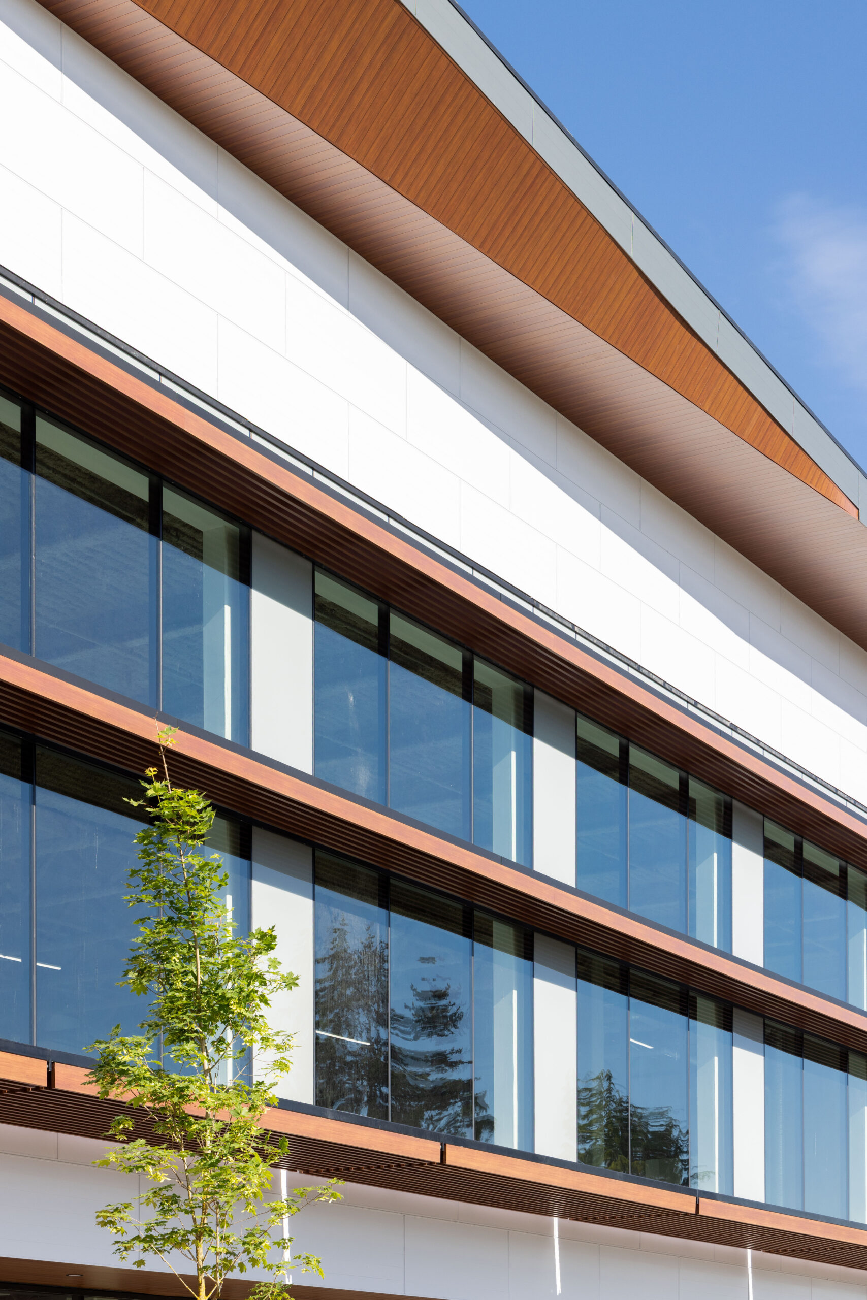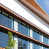 Zips Car Wash, 6″ V-Groove Planks, 4” & 6″ Link & Lock™, 6” Panelboard™ for Cladding in Custom “Zips” Red, Bone White, Black, Table Walnut