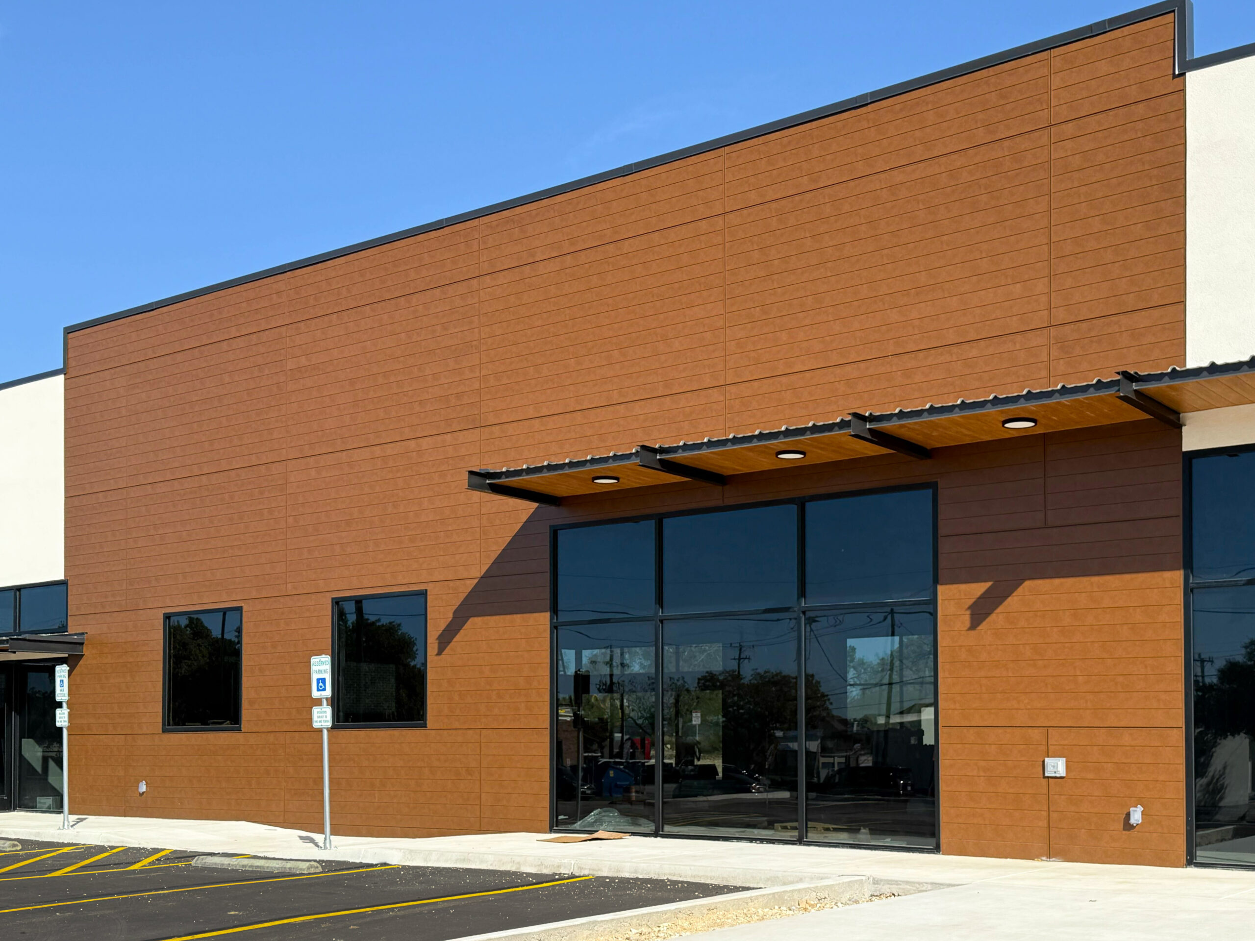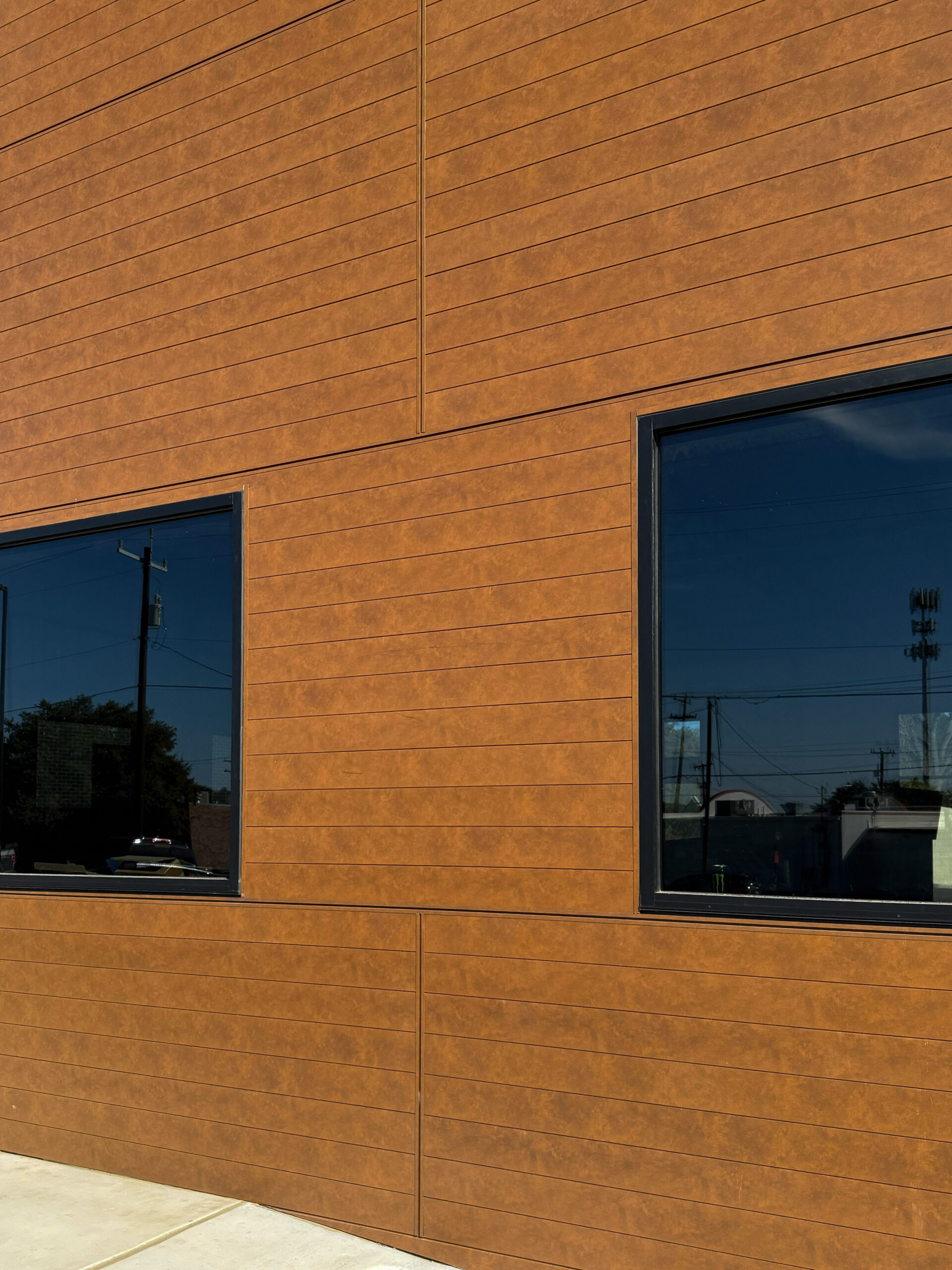 A unique application using V Groove with U reveal sets to create a larger panel look.