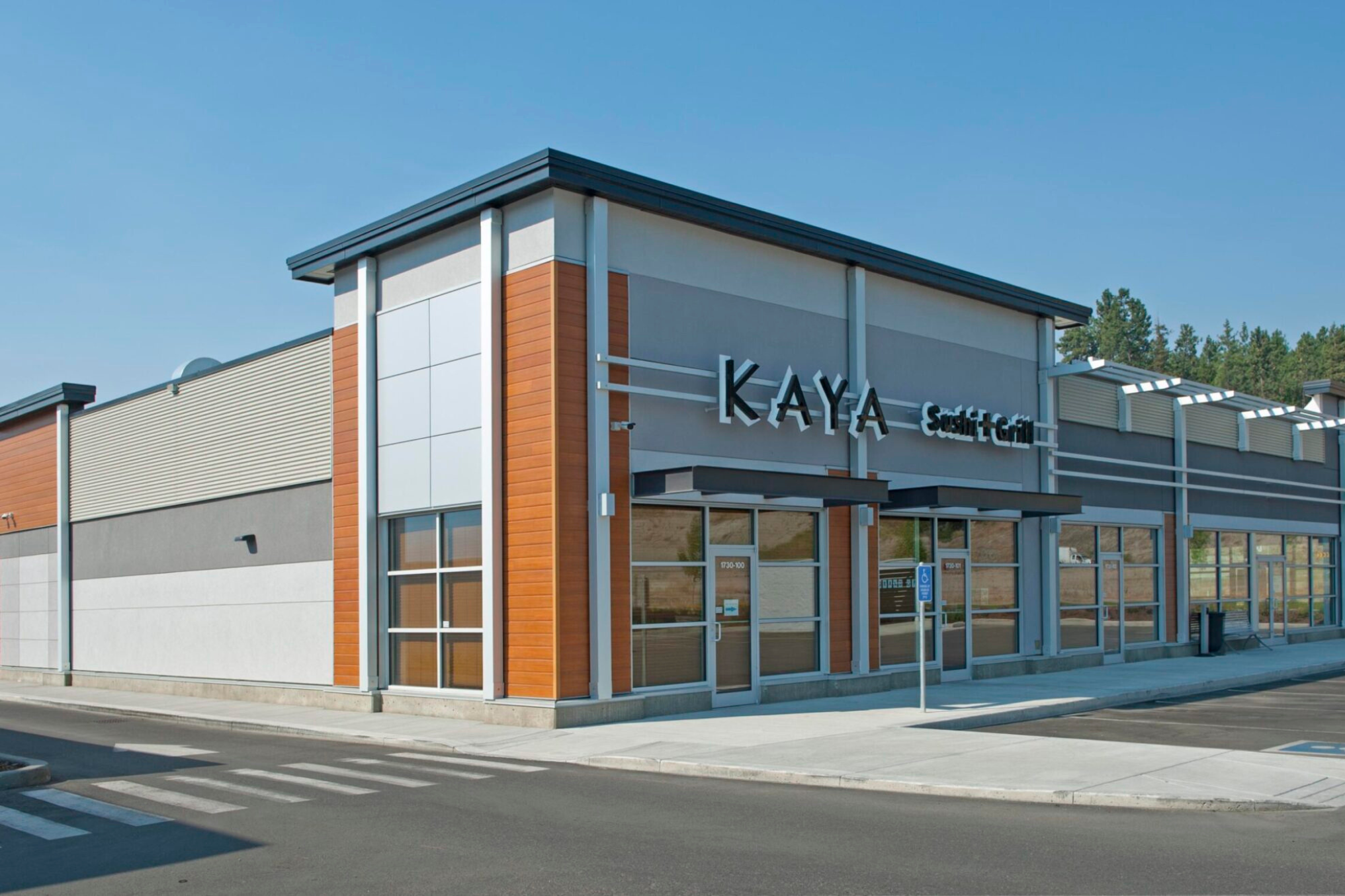 Kelowna Airport Village is a thoughtfully designed retail plaza that offers a welcoming mix of shops and services. Across the site, Longboard’s woodgrain 6″ V-Groove planks in Light Cherry were used as cladding accents, bringing warmth and visual interest to the modern exterior. The rich wood tones provide a striking contrast to the surrounding black, grey, and white façade elements, adding depth and texture while creating a more inviting atmosphere for visitors.