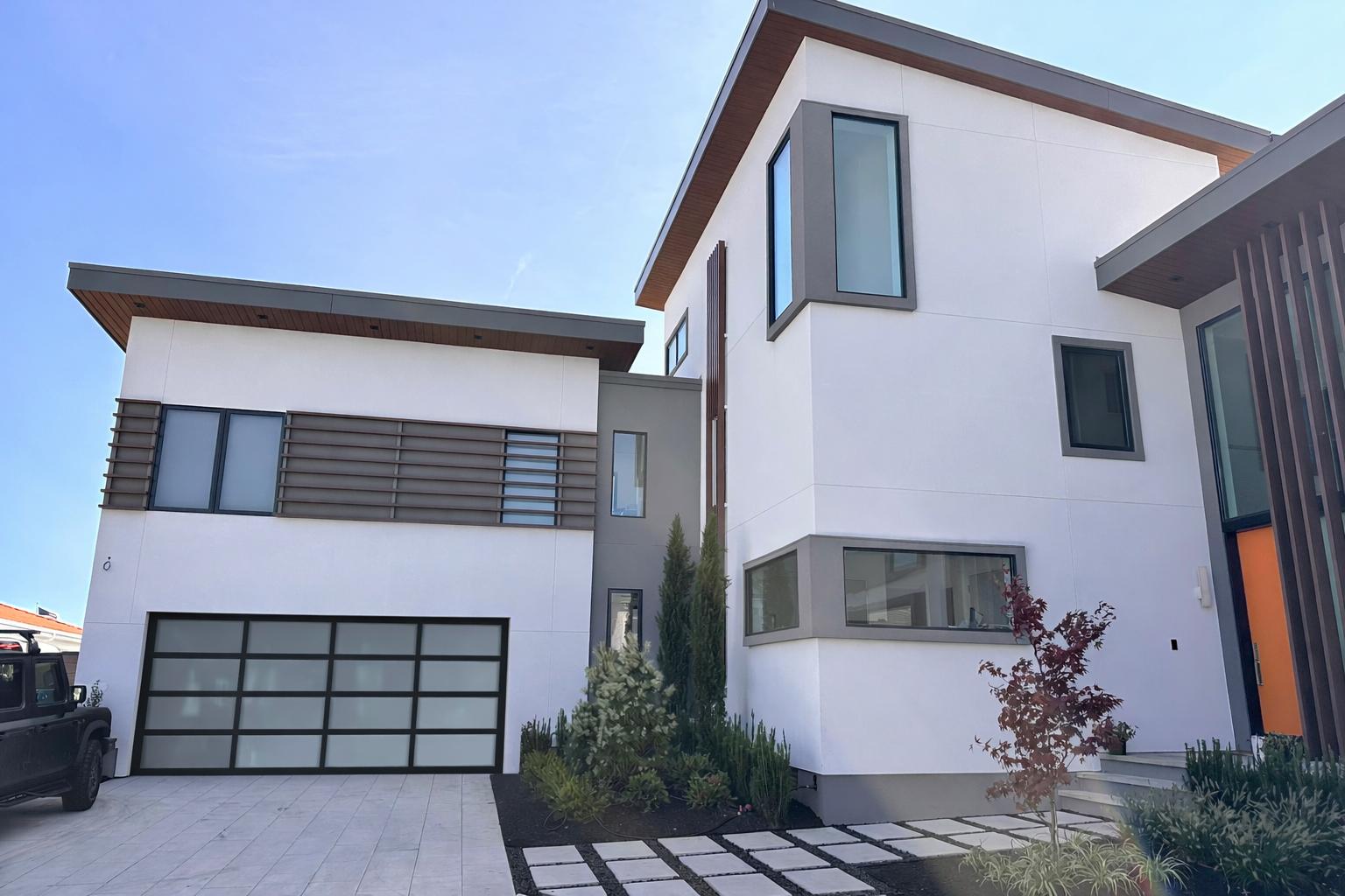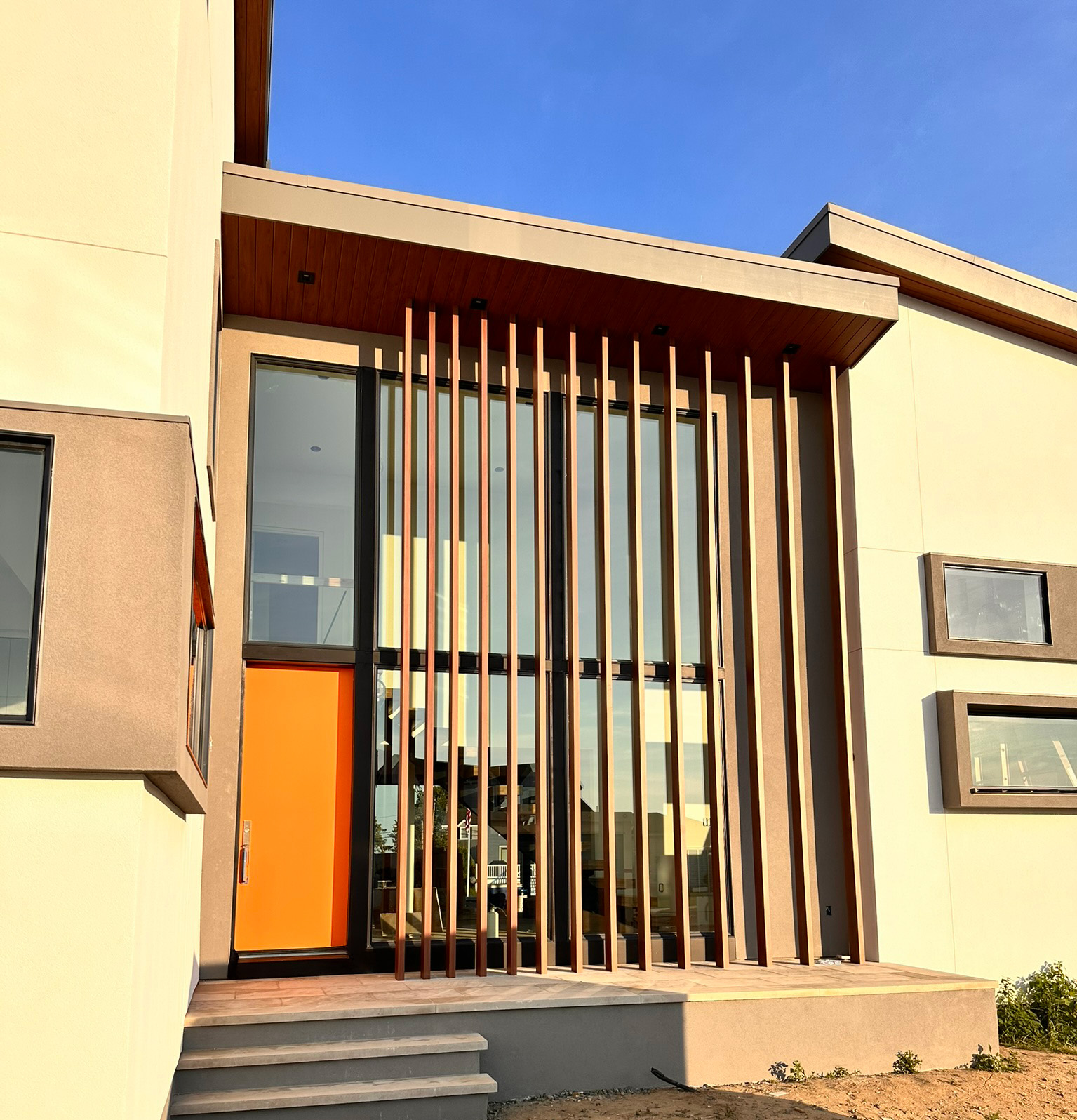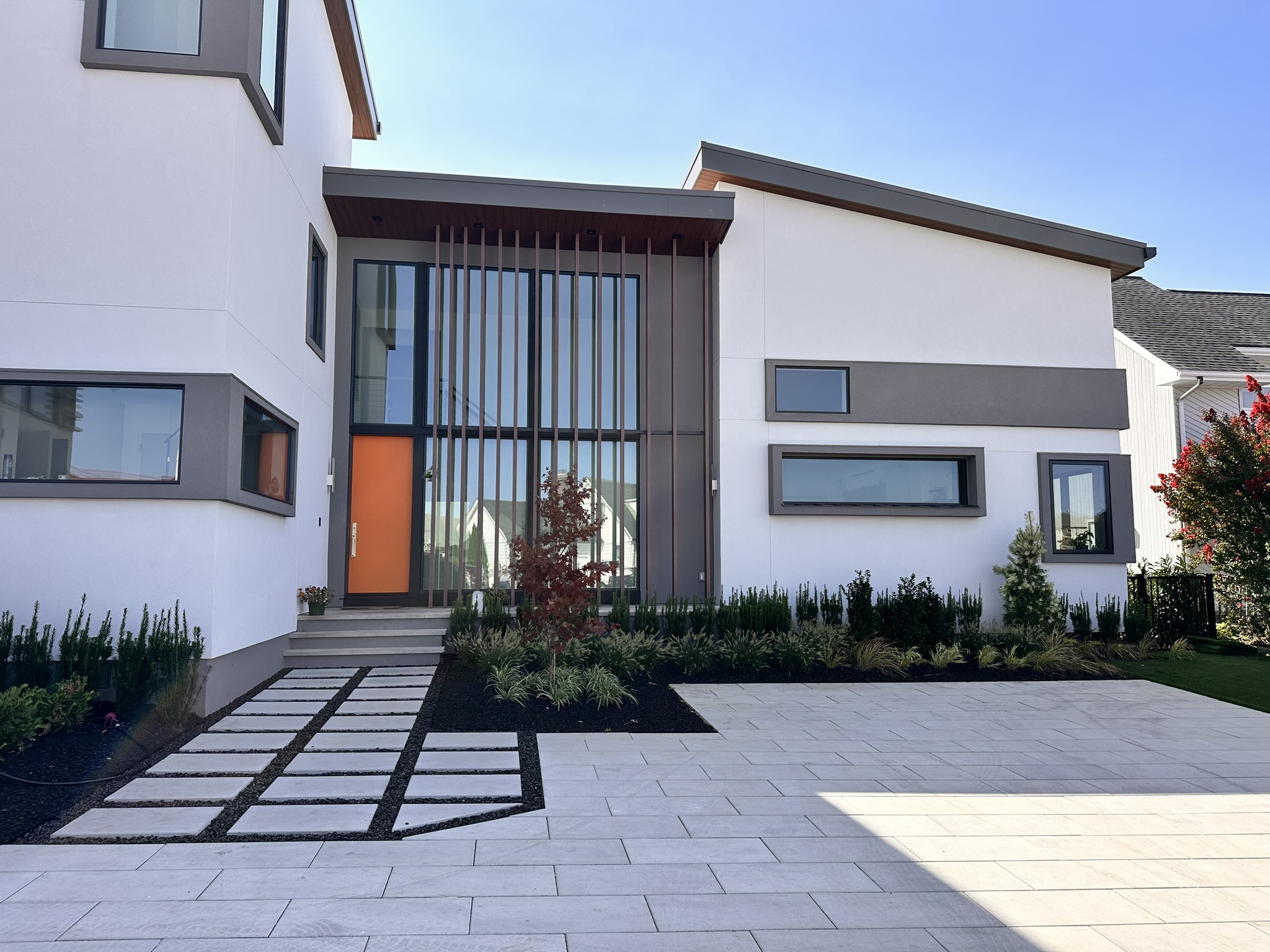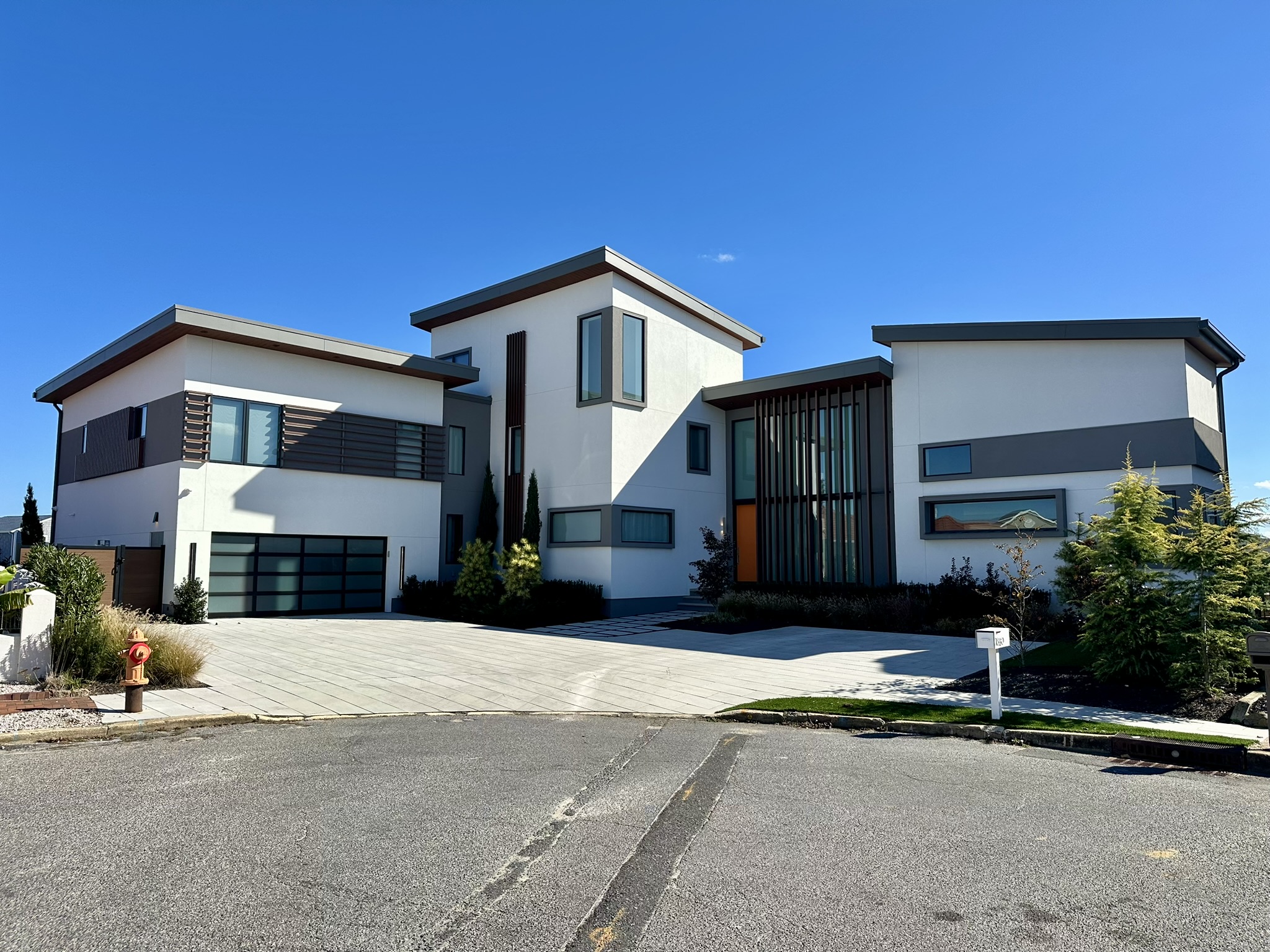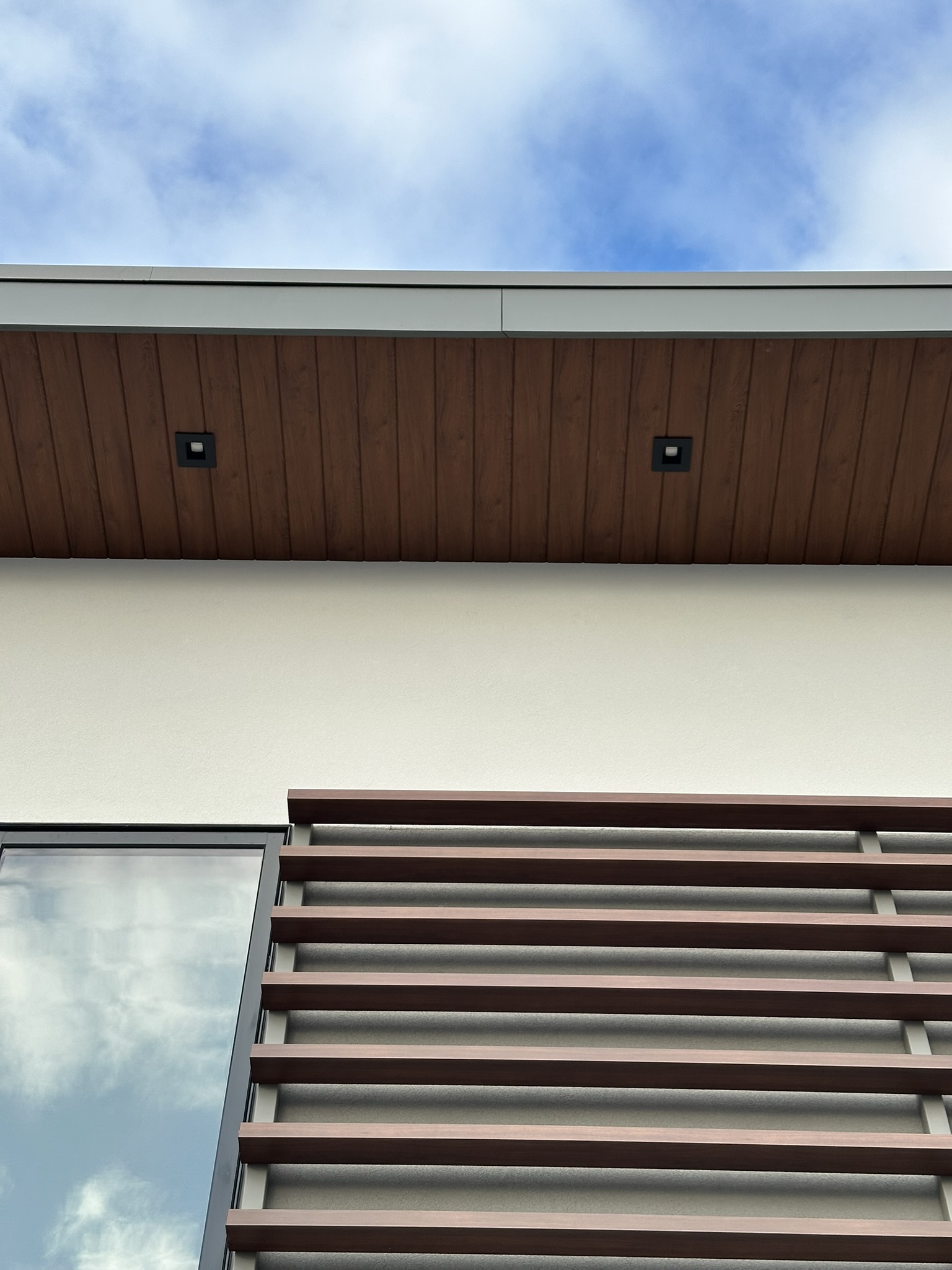 This New Jersey residence features Longboard’s Link & Lock and Tongue & Groove on the siding and soffits of the home. Bringing in a warm wood finish to offset the neutral white’s and greys of the home’s façade.