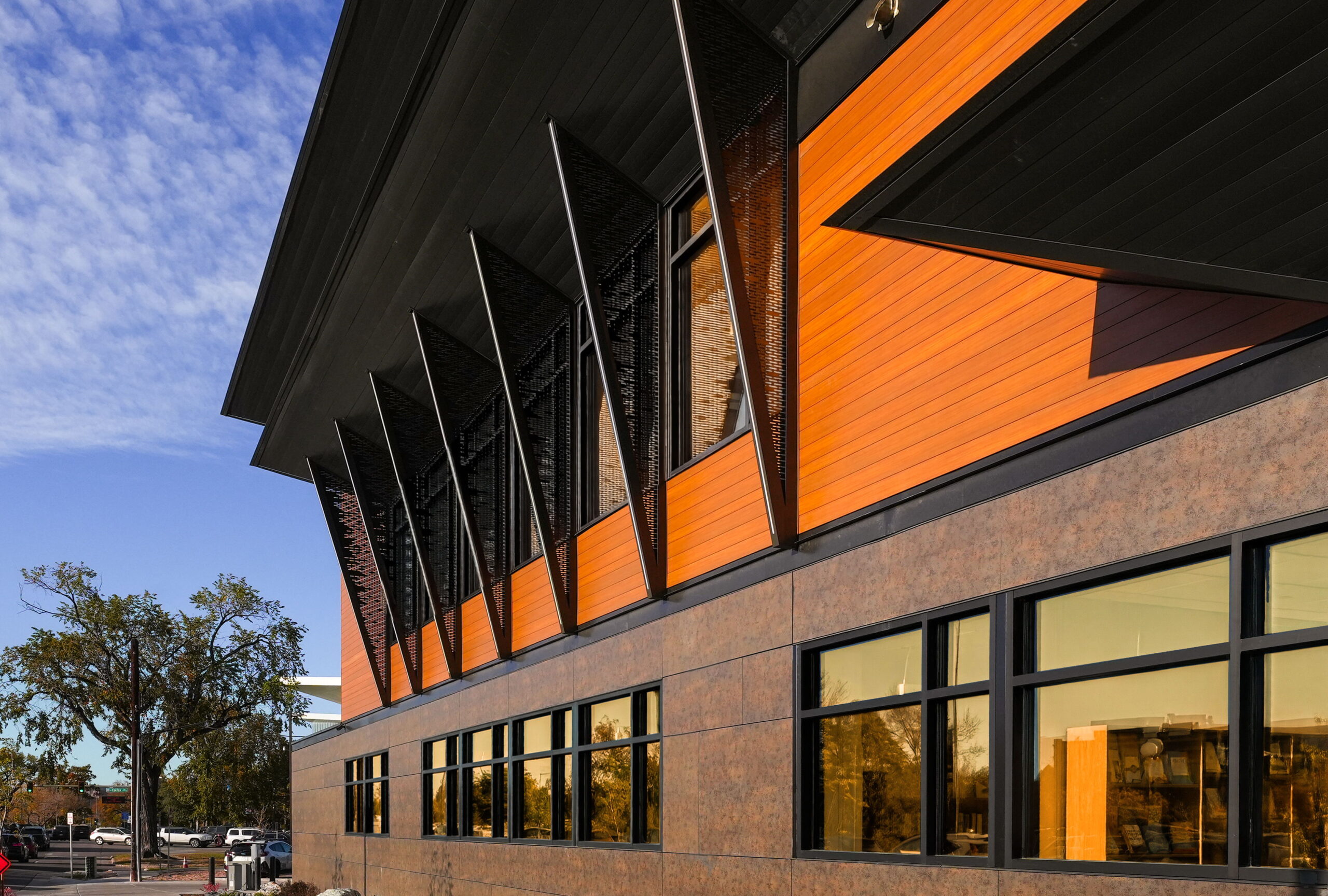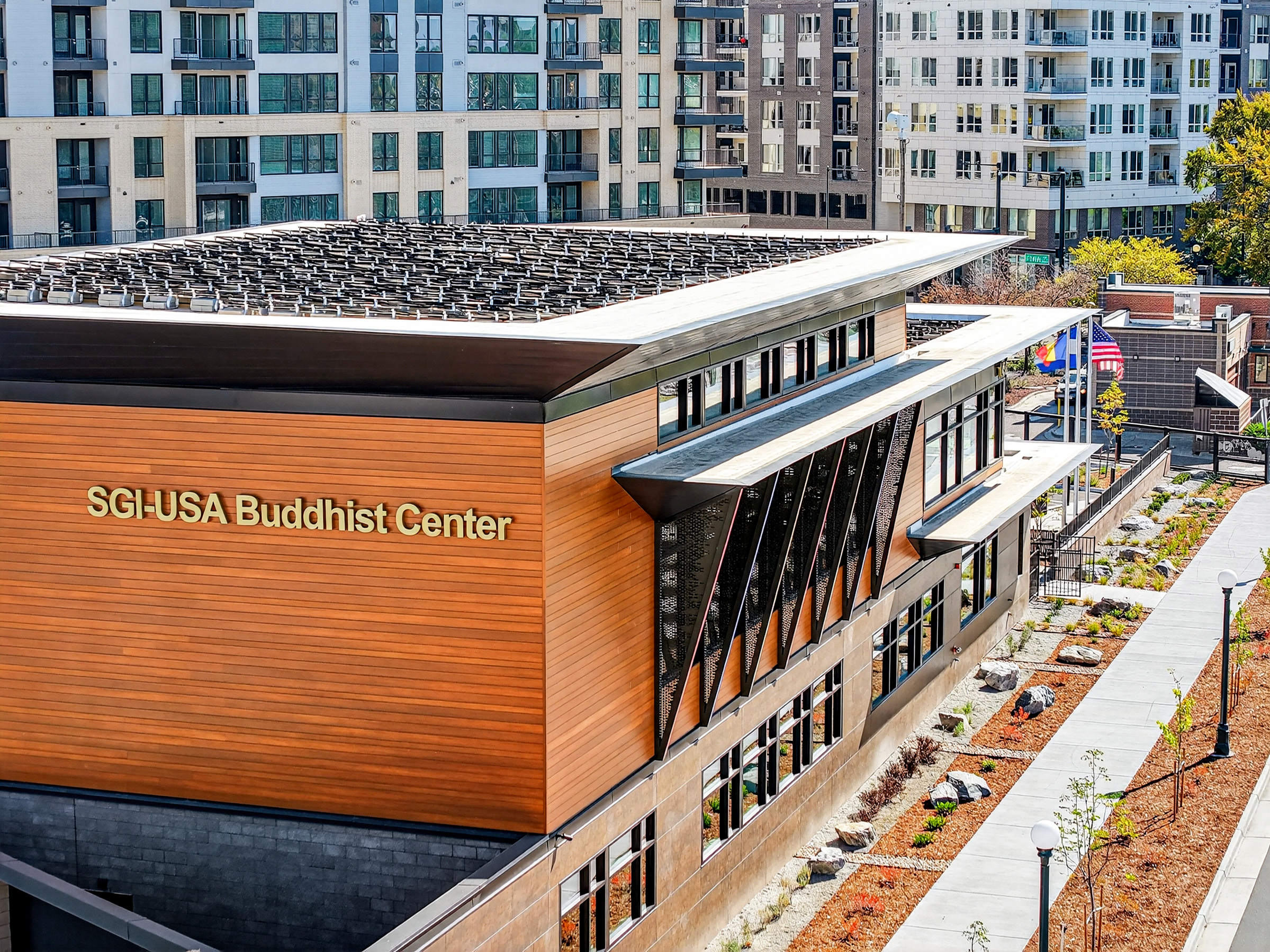 A brand new, net-zero Buddhist Center in the heart of downtown Denver, replacing a 1962 building nearly twice the size. While the footprint has stepped back, the project marks a monumental leap forward in design, efficiency, and alignment with Denver’s clean-energy ambitions. The project uses 6″ V Groove throughout, walls clad in Dark Fir & peaked soffits in a dark Onyx Black, a modern expression of sustainability and serenity.
