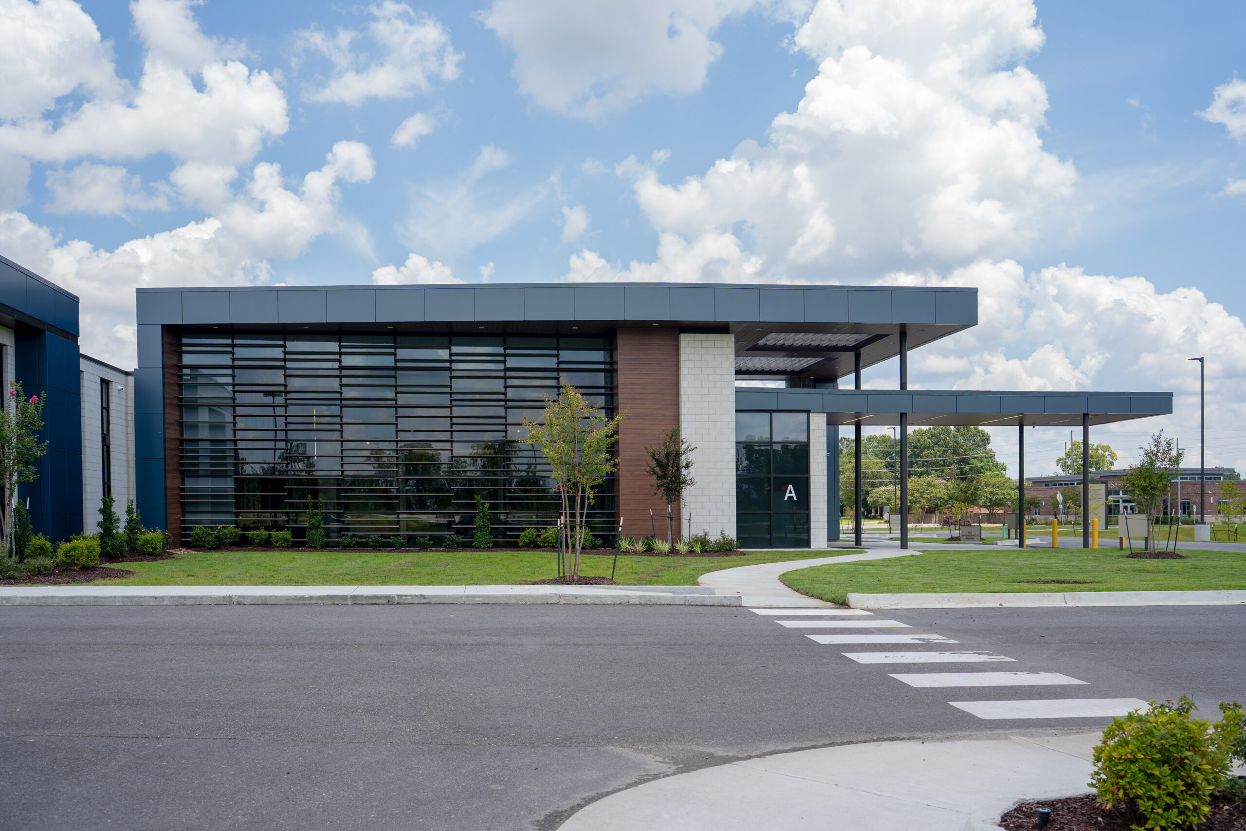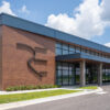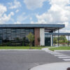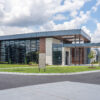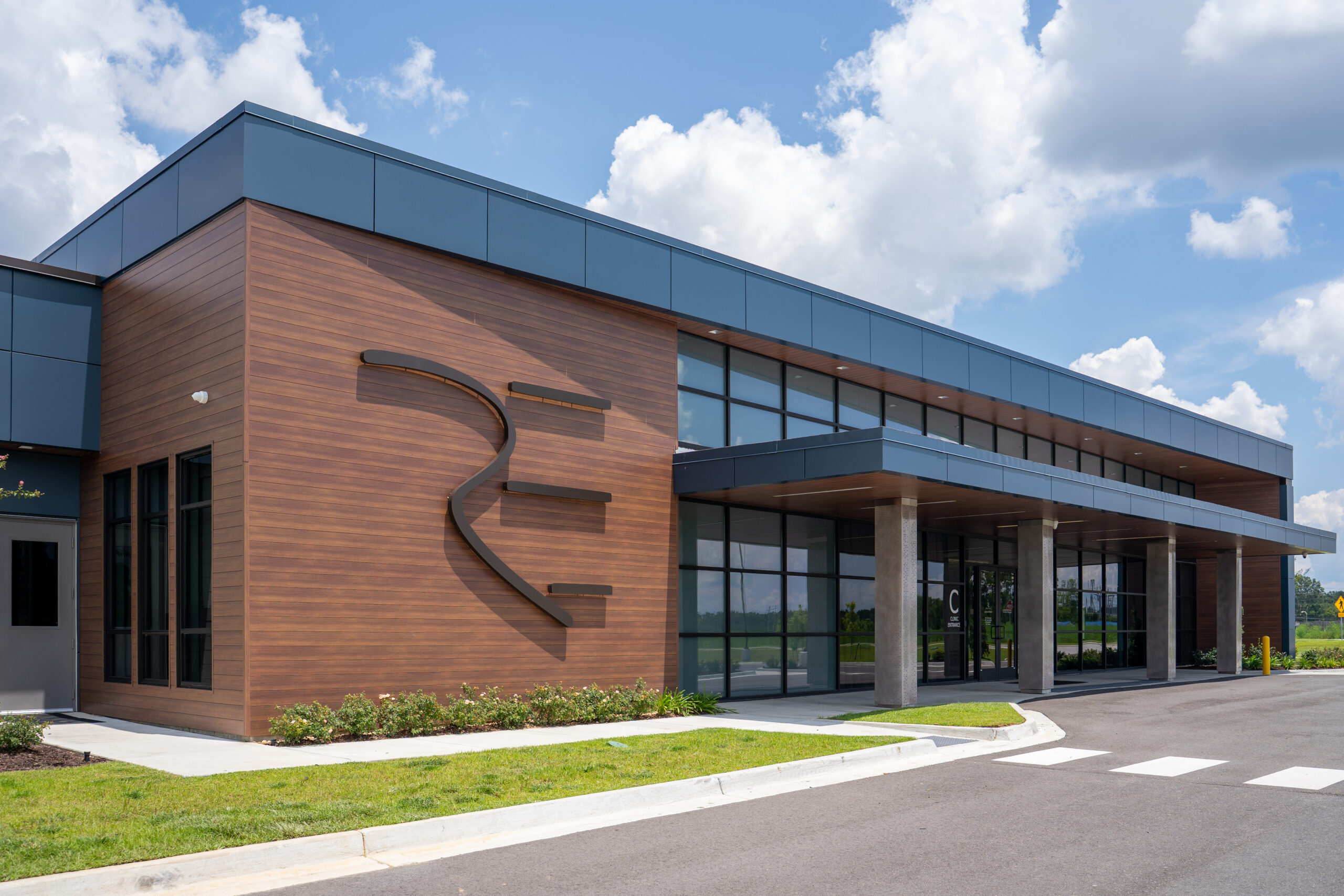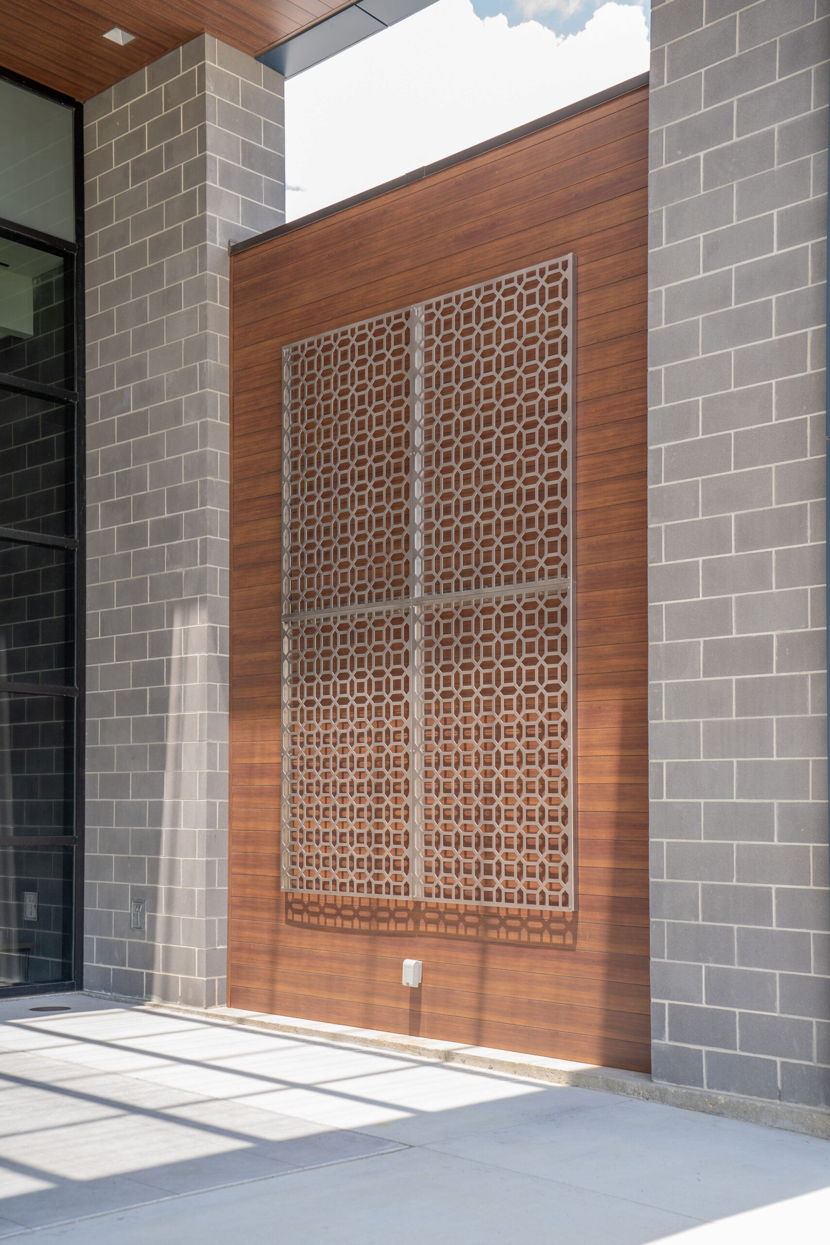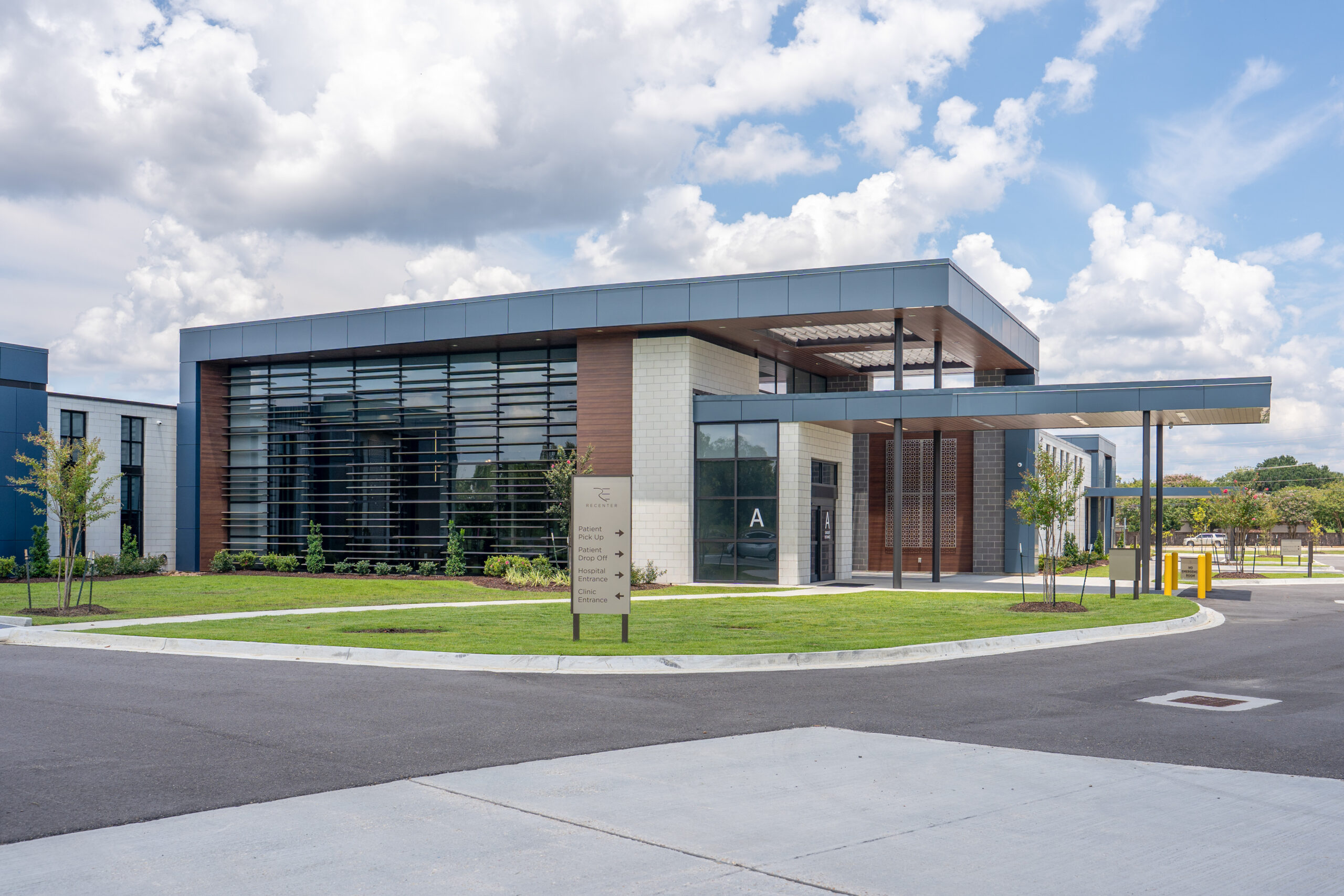The Specialty Surgical Hospital in Louisiana, designed by Grace Herbert Curtis Architects, features Longboard’s 6″ V Groove Tongue & Groove planks in a Light National Walnut finish, seamlessly tying together the blue-grey panelling and white brick façade.