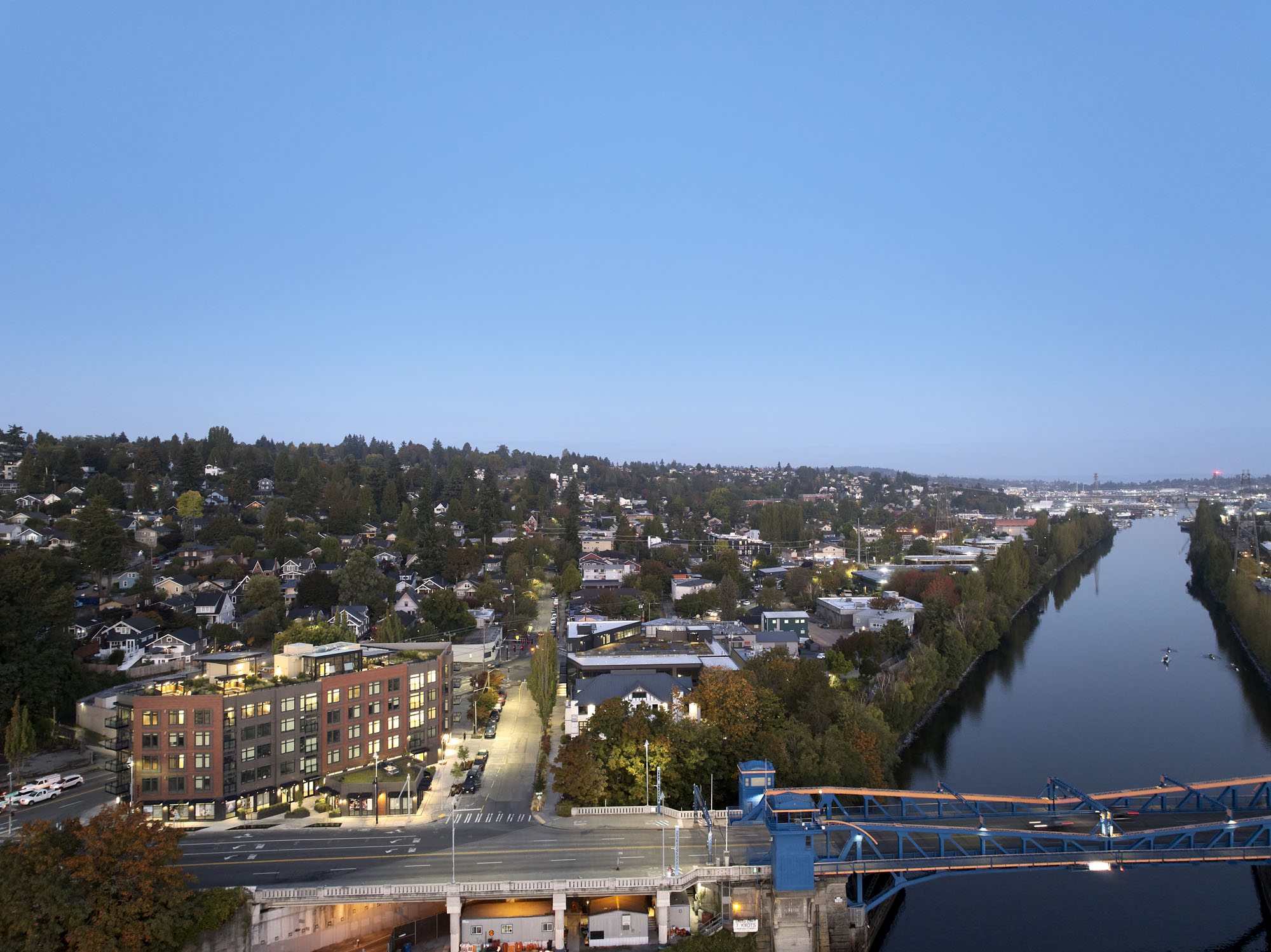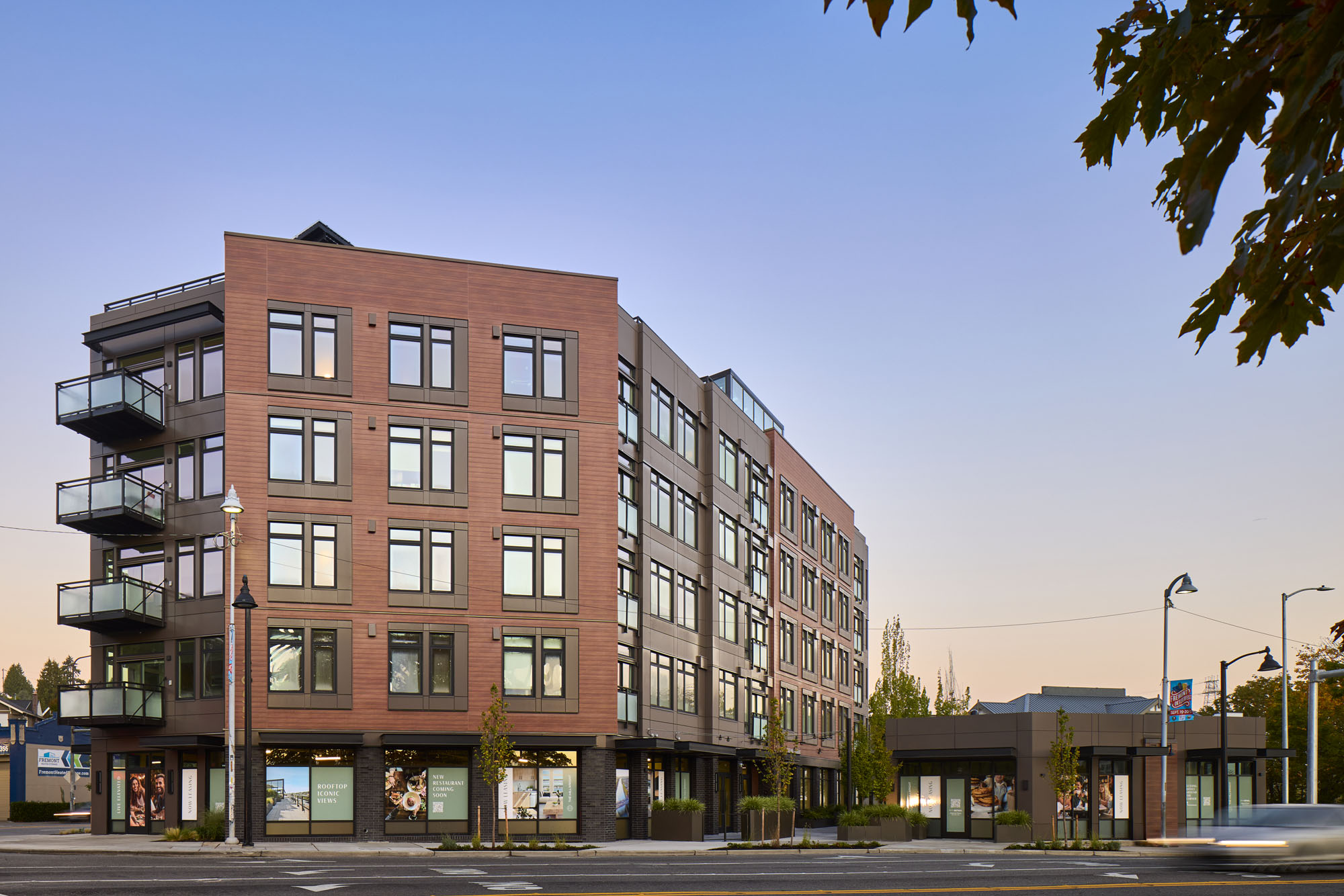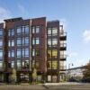 The Millwright in Seattle, Washington, features Longboard across its façade and soffits, crafted from 6″ V-Groove Tongue & Groove planks in a Light National Fir finish, reinforcing the Pacific Northwest aesthetic.