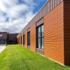 The Tweed New Pot Warehouse in Smiths Falls, designed by Figurr Architects Collective, demonstrates how industrial facilities can integrate contemporary design. The exterior utilizes Longboard Privacy Beams in a 1×3″ profile, finished in Dark Cherry.