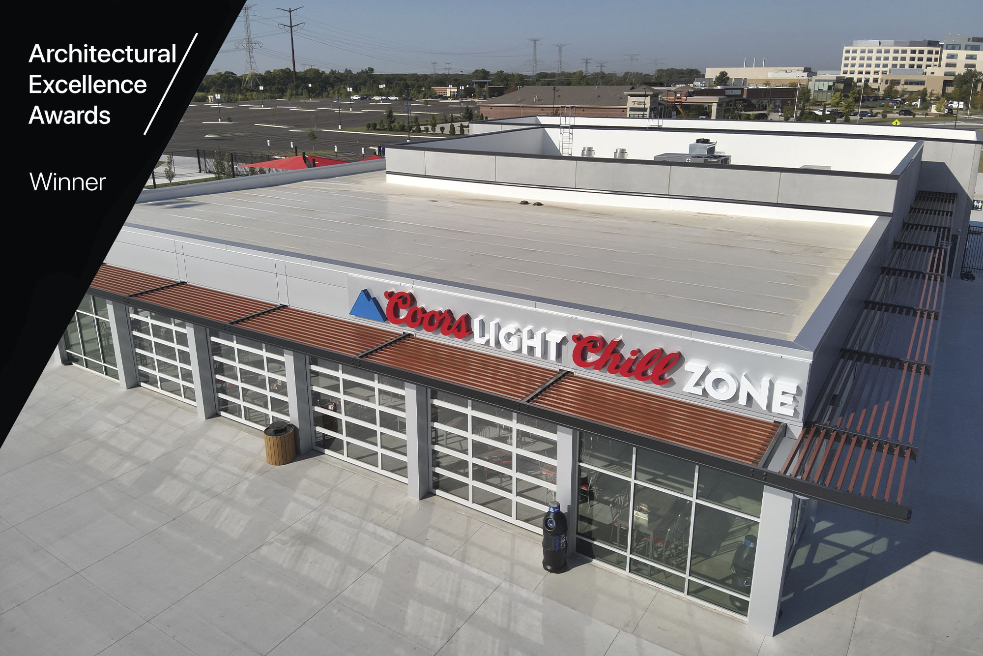 The Wintrust Crossroads Sports Complex, located in New Lenox, Illinois features Longboard’s 6″ Link & Lock. The pergola in a Western Cedar finish provides shade and depth to the facade of the structure.