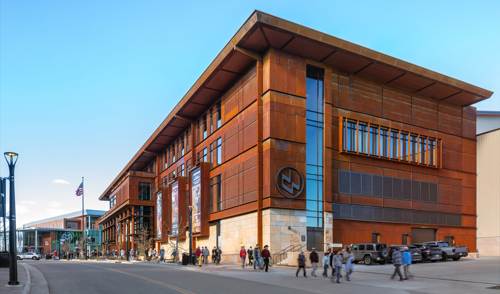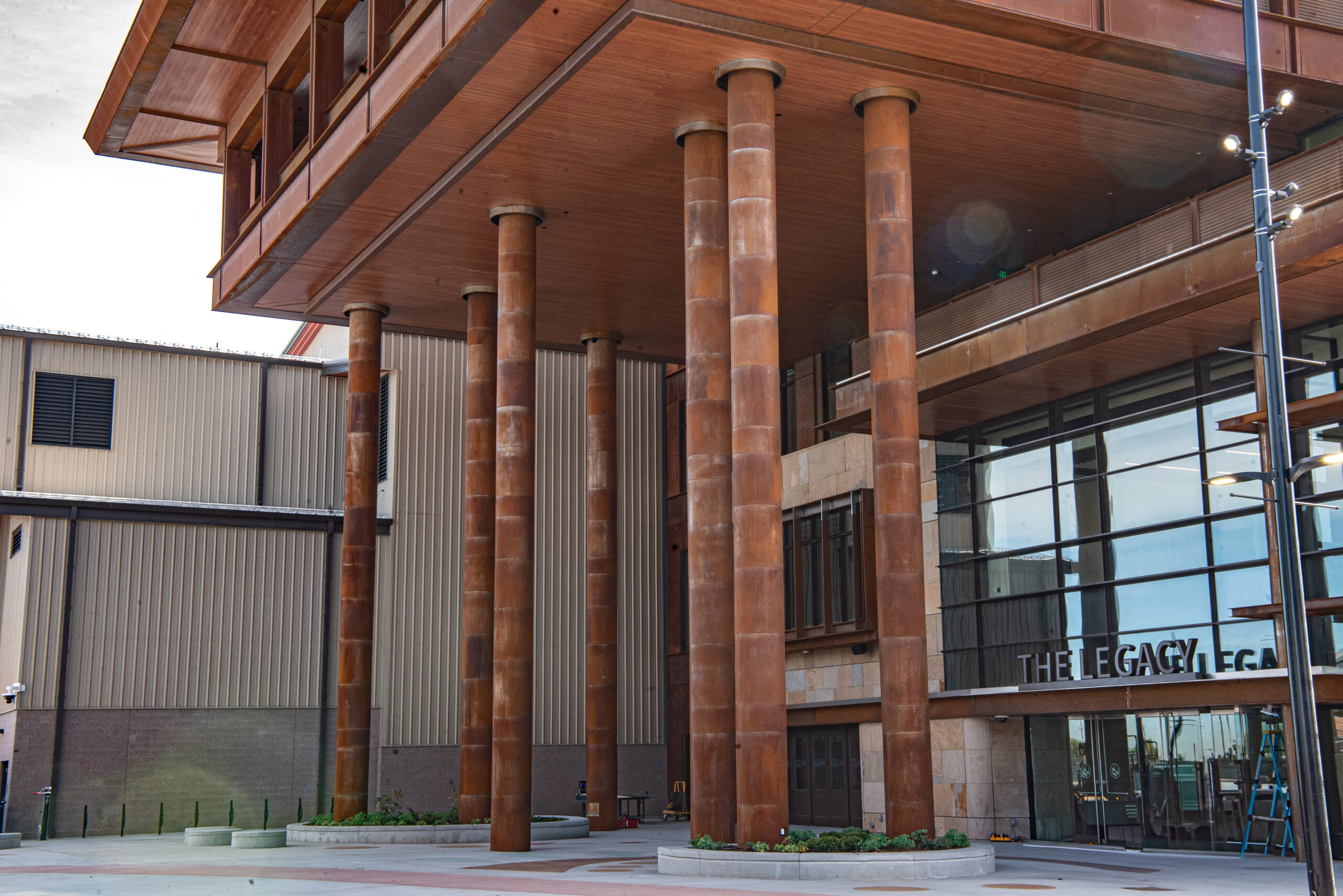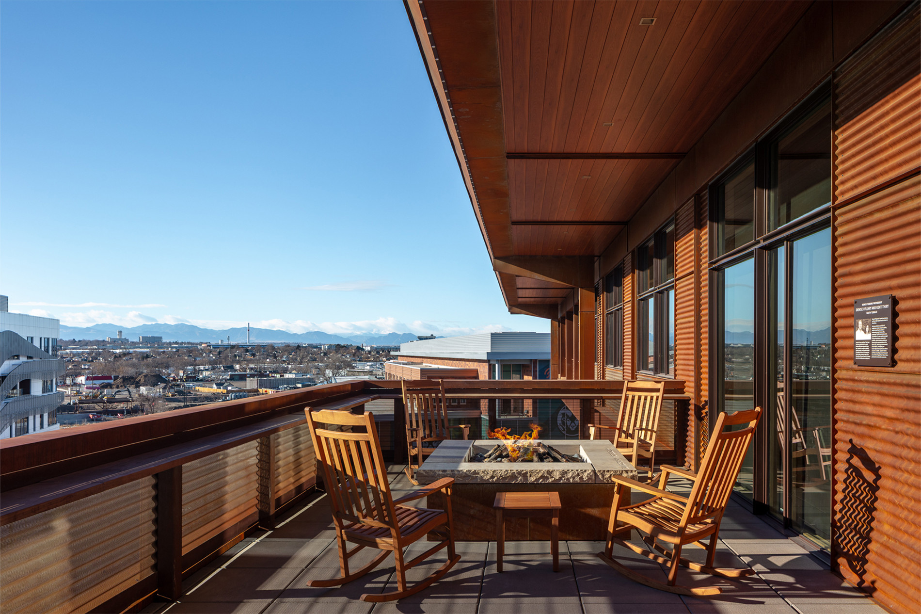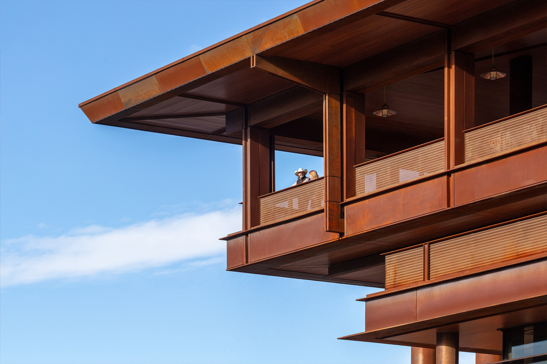 Longboard wood-grain aluminum soffits were installed across exterior overhangs, delivering the warmth of wood with long term durability. Custom sheet-metal trims created seamless transitions to adjacent systems, with precision circular cuts to wrap columns and penetrations.