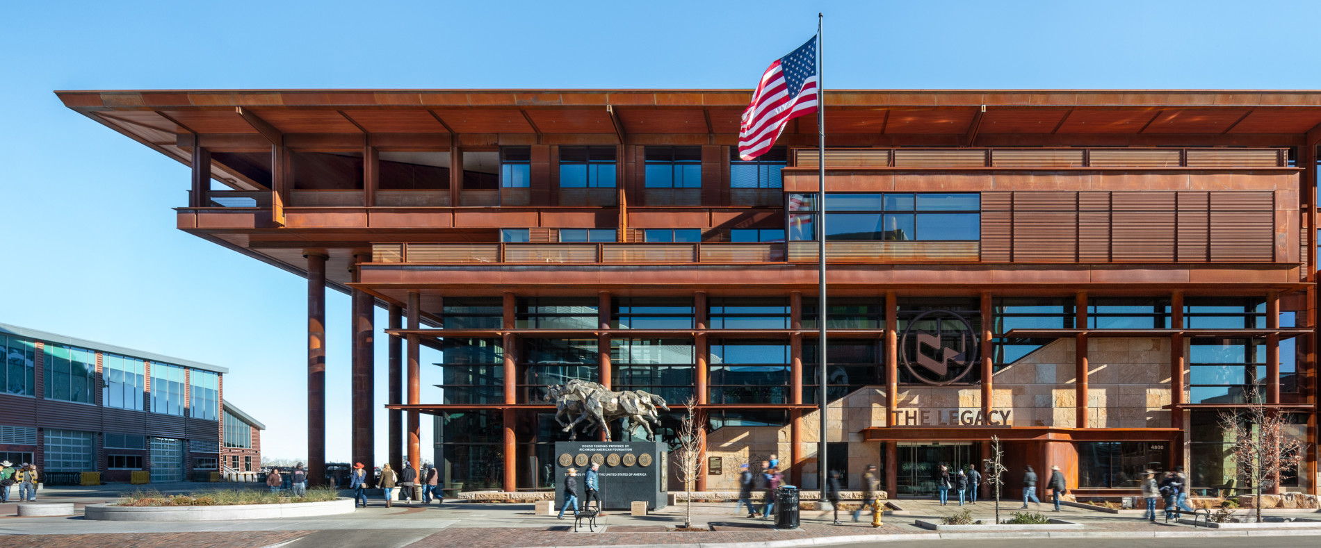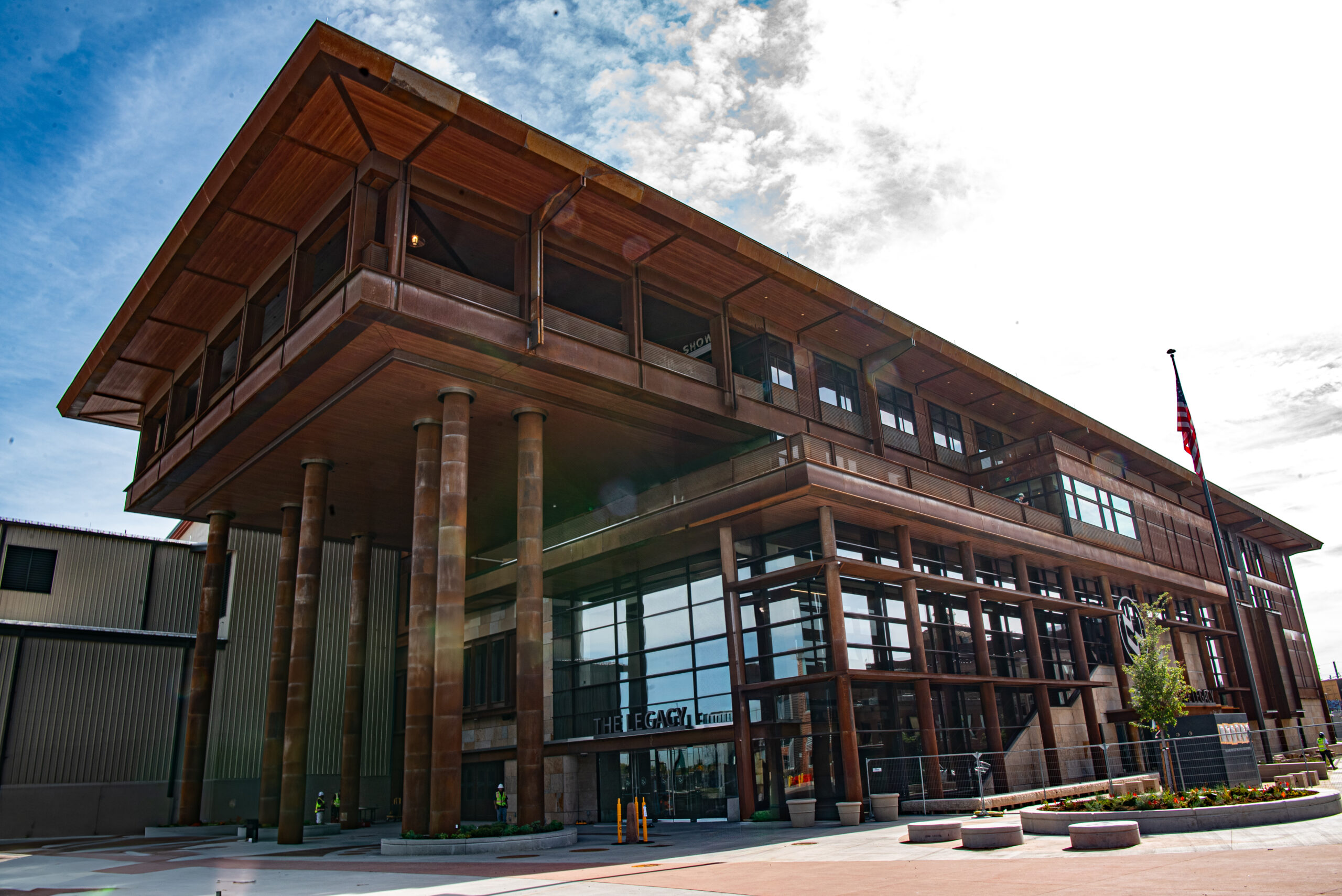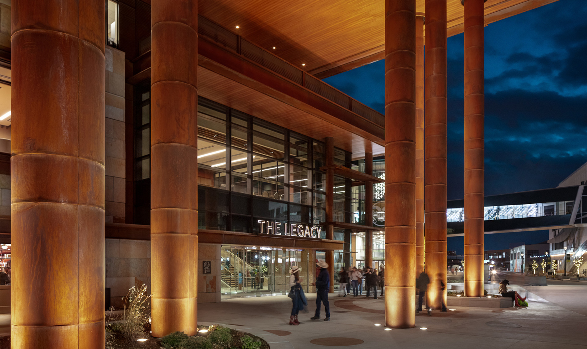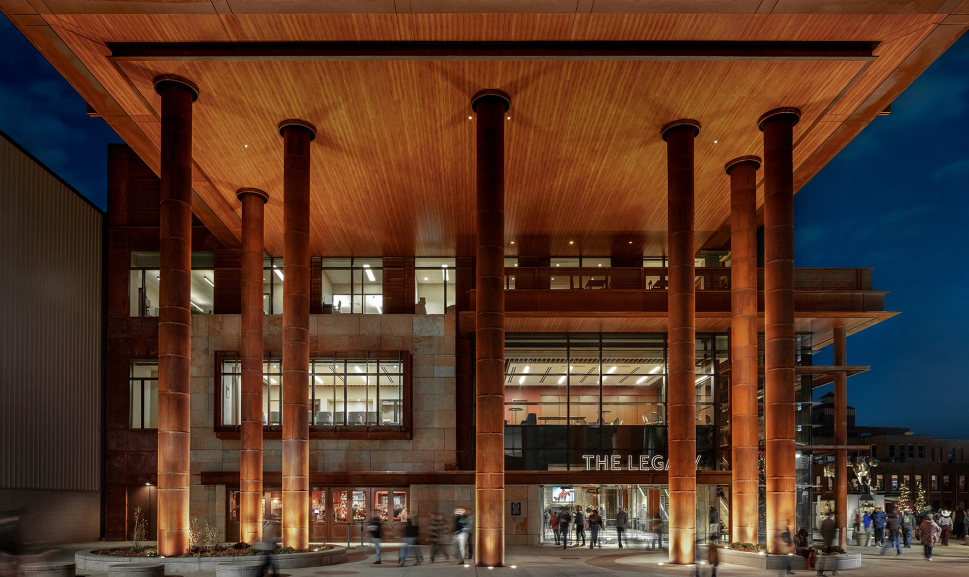 Longboard wood-grain aluminum soffits were installed across exterior overhangs, delivering the warmth of wood with long term durability. Custom sheet-metal trims created seamless transitions to adjacent systems, with precision circular cuts to wrap columns and penetrations.
